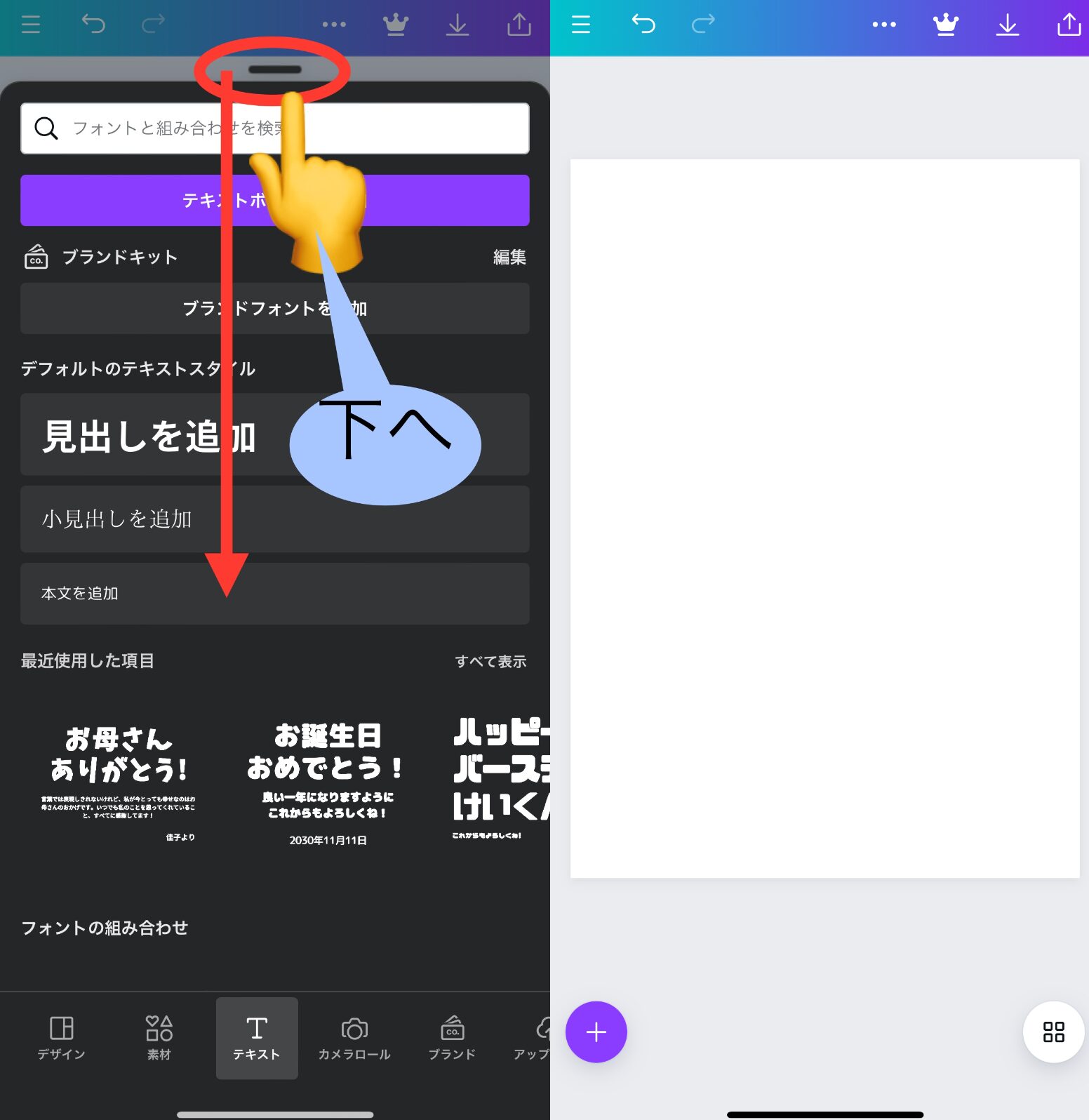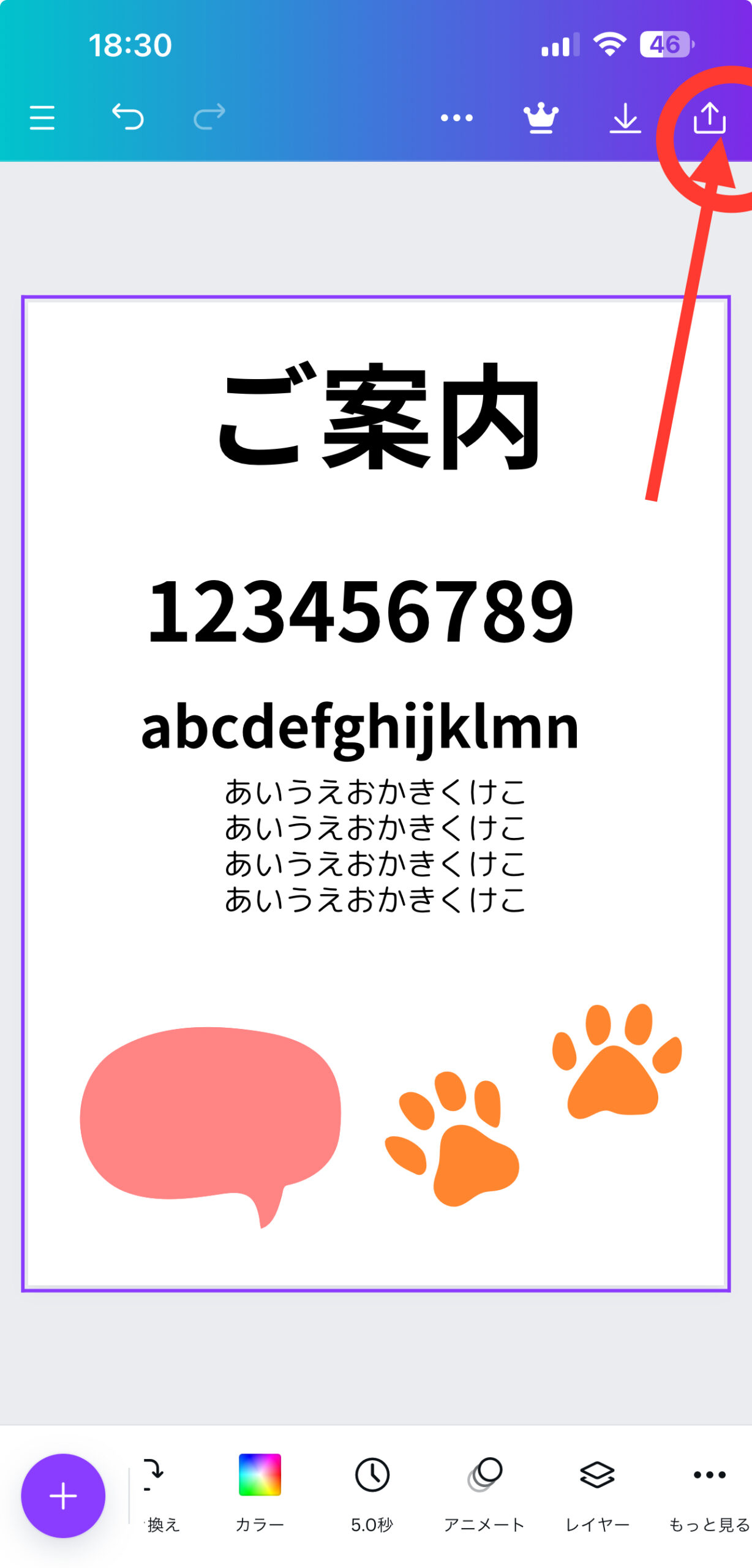 『Canva』は、編集途中でもをタップ→