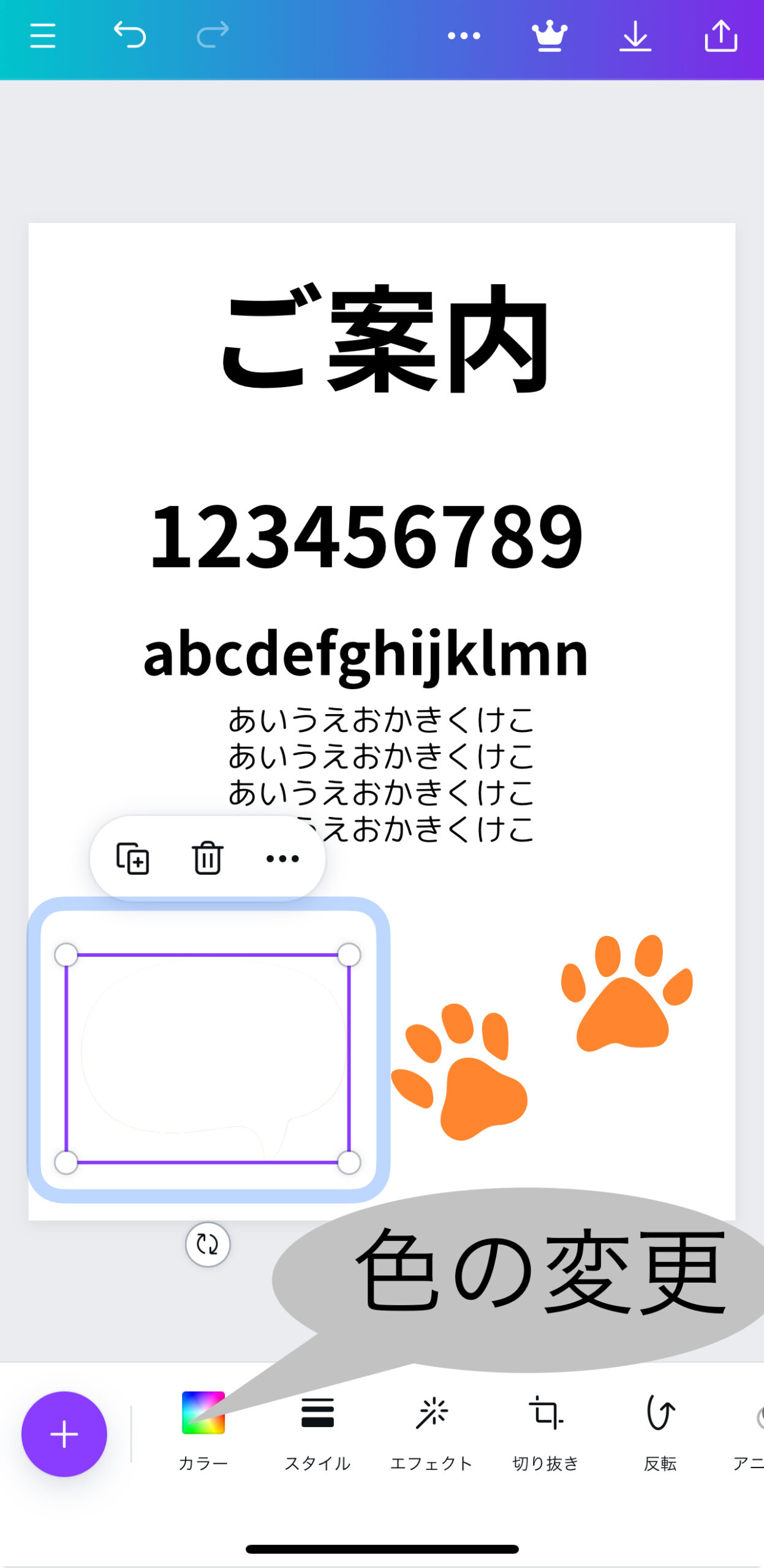 - 素材などを選択した状態で色の変更などの編集をします