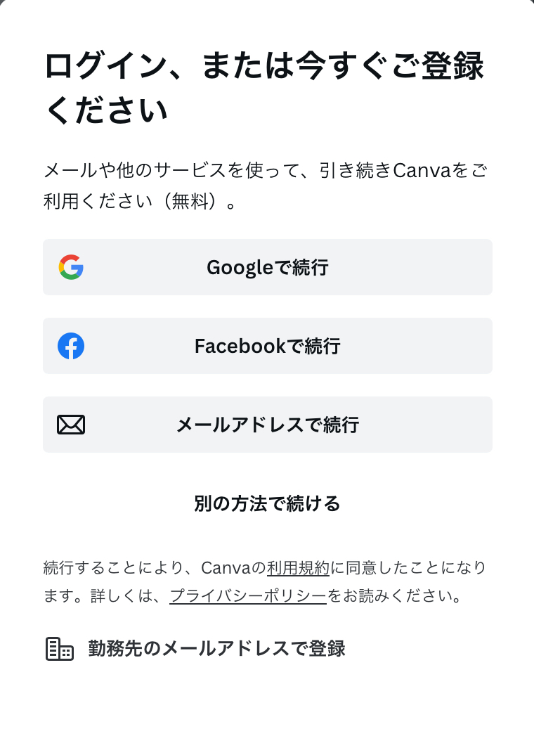 - ログイン方法が、いくつかあります。お好みで選択してアカウントを作成します。
