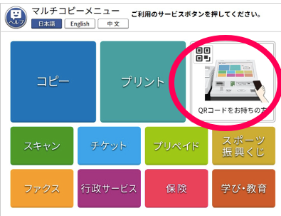コピー機:【QRコードをお持ちの方】をタップ