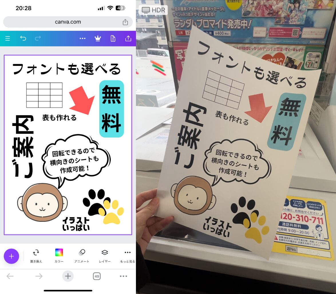 (エラーが出たらコンビニでのプリントはできません。Canvaのデザイン作成時、「カスタムサイズを選択するとここでエラーがでます」)