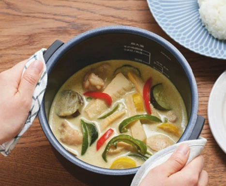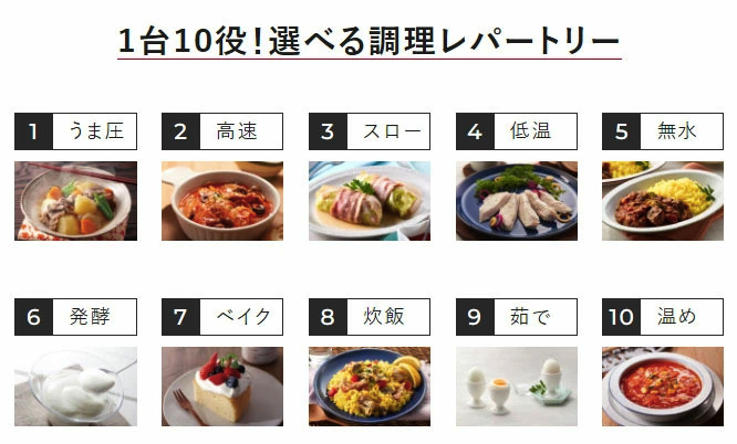タイガークックポットは、材料を入れるだけで料理を仕上げる簡単便利な1台10役の多機能モデルです。