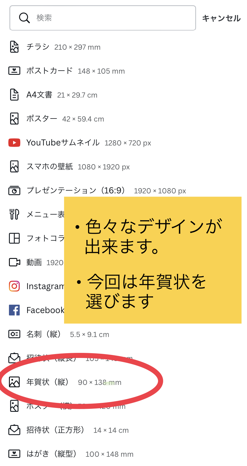 ②デザインを選択します。今回は年賀状(縦)