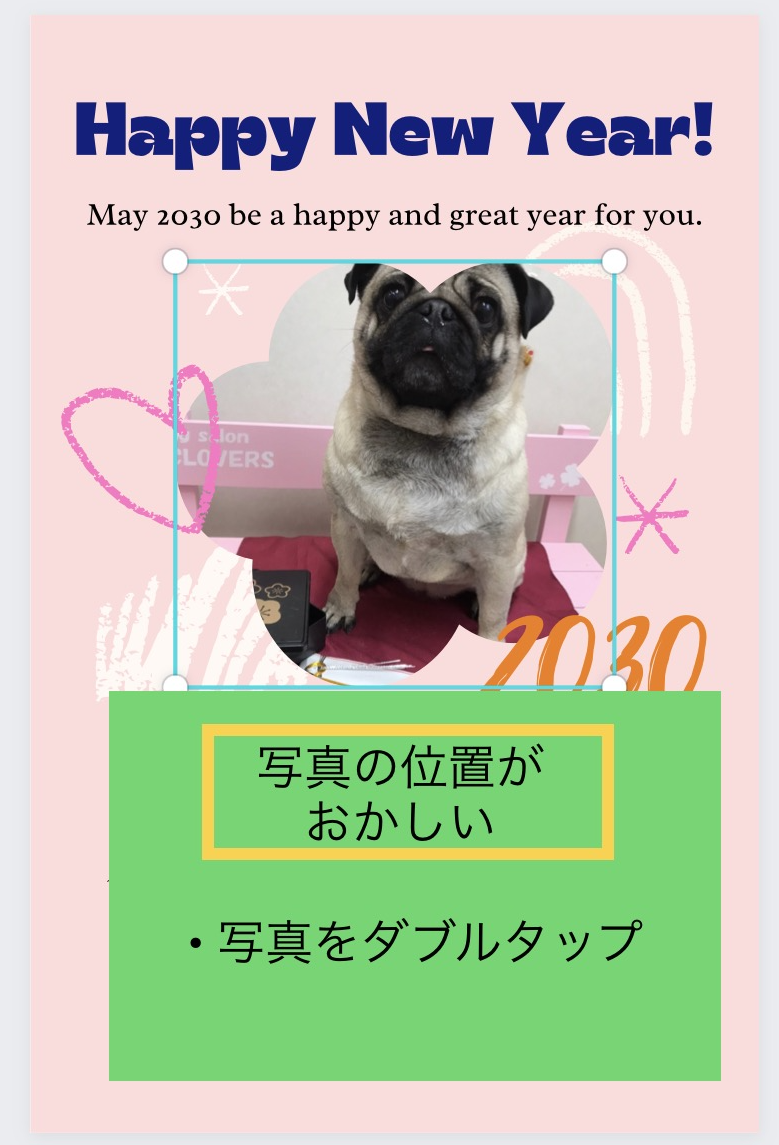 ⑦写真を選択すると、元の写真と置き換わりますが、位置がおかしい時があります。