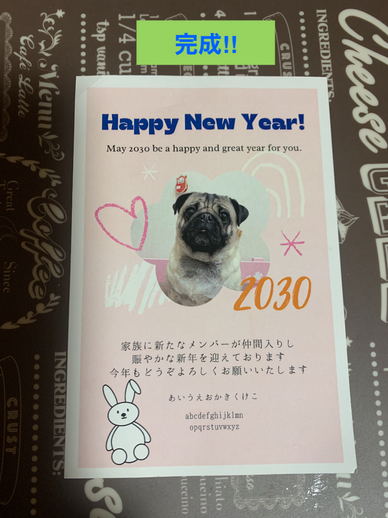 今回作成するデザインは、下記ような年賀状です。