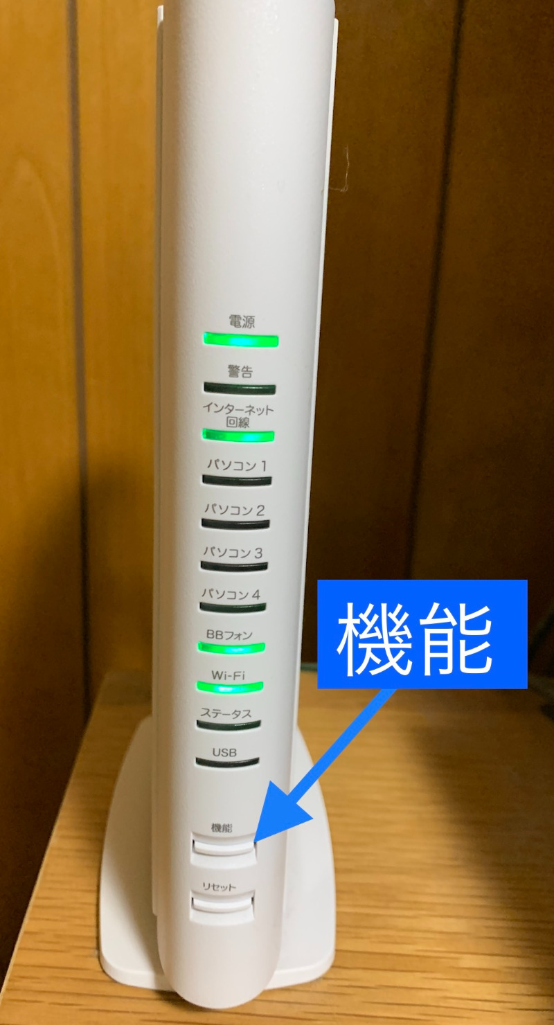 (ルーターにより表示が違う)我が家は【機能】他に【AOSS】など